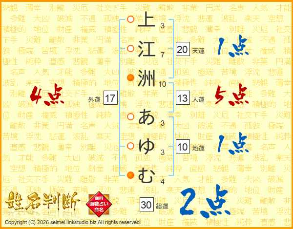 上江洲あゆむさんの総運は30画の2点!