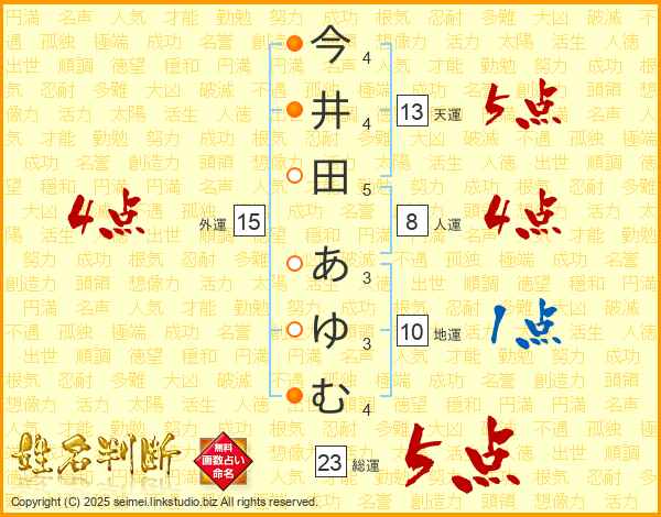 今井田あゆむさんの総運は23画の5点!