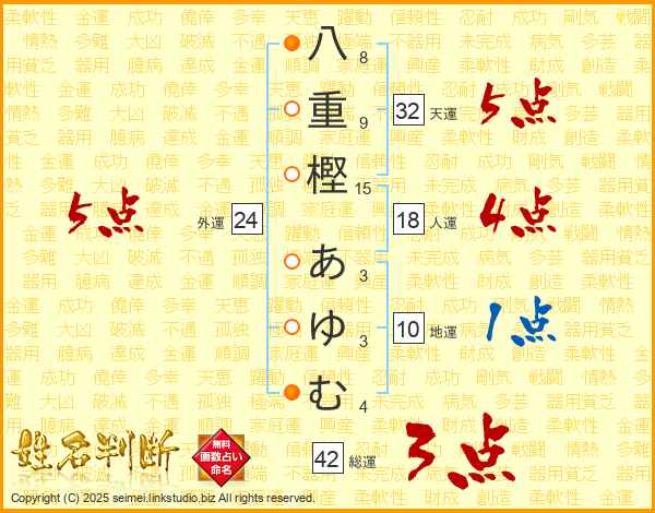金運 順調 家庭運 興産 柔軟性 財成 創造