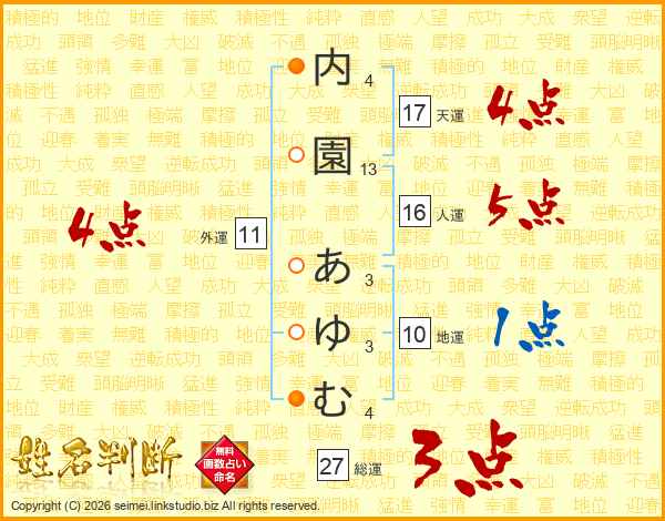 内園あゆむさんの天運は17画の4点!