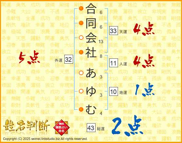 合同会社あゆむさんの天運は33画の4点!