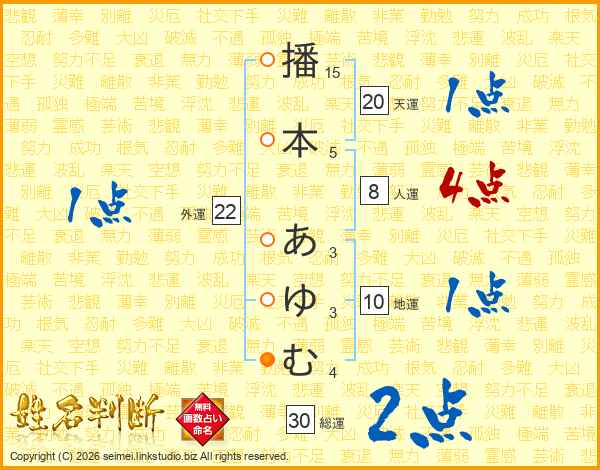 播本あゆむさんの総運は30画の2点!