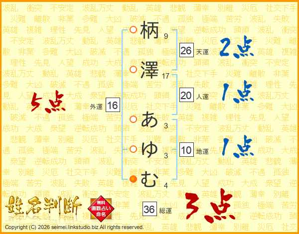 柄澤あゆむさんの天運は26画の2点!