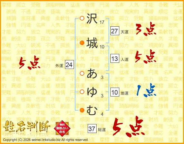 沢城あゆむさんの総運は37画の5点!