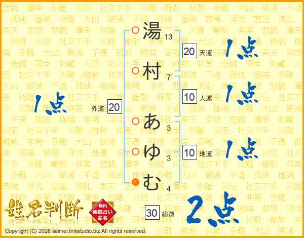 湯村あゆむさんの総運は30画の2点!