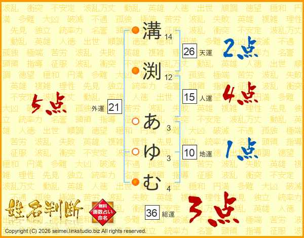 溝渕あゆむさんの総運は36画の3点!