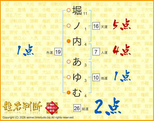 堀ノ内あゆむさんの総運は26画の2点!