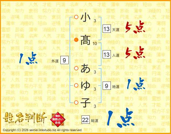 小髙あゆ子さんの天運は13画の5点!