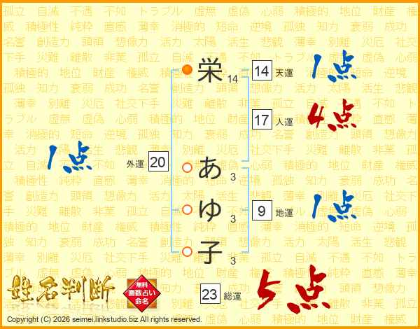 栄(14画) あ(3画)ゆ(3画)子(3画)