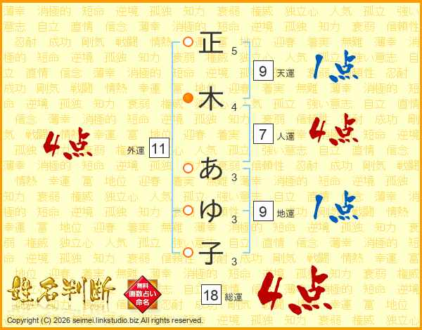 正木あゆ子さんの総運は18画の4点!