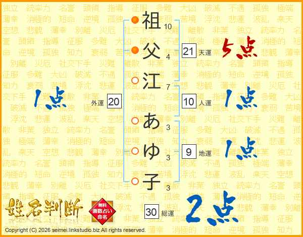祖父江あゆ子さんの天運は21画の5点!