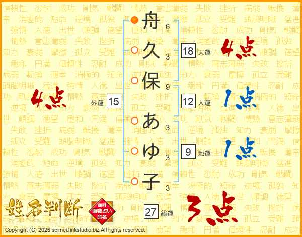 舟久保あゆ子さんの総運は27画の3点!