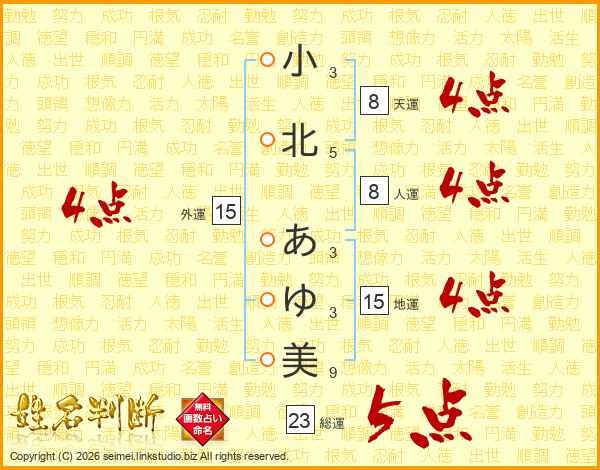 小北あゆ美さんの外運は15画の4点!