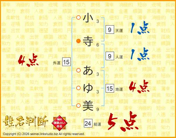 小寺あゆ美さんの総運は24画の5点!