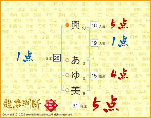 興あゆ美さんの総運は31画の5点!