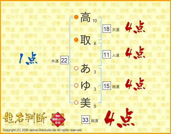 高取あゆ美さんの総運は33画の4点!