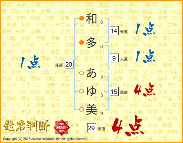 和多あゆ美さんの総運は29画の4点!