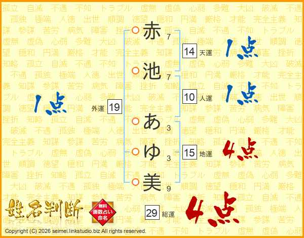 赤池あゆ美さんの総運は29画の4点!