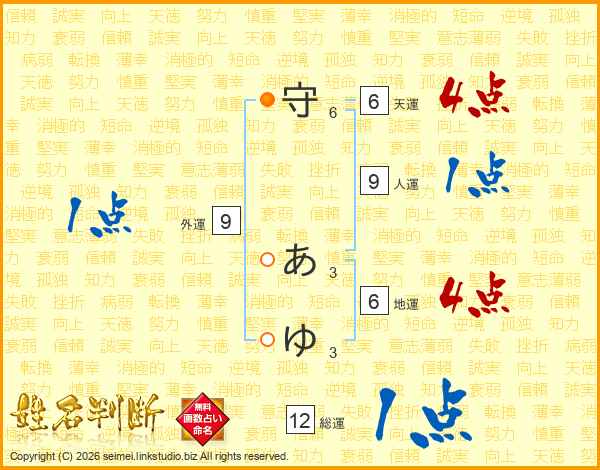 守あゆさんの総運は12画の1点!