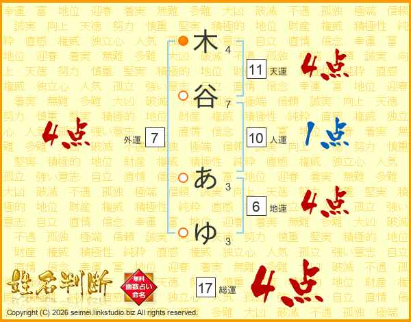 木谷あゆさんの総運は17画の4点!