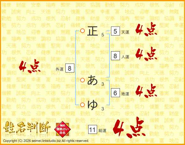 正あゆさんの総運は11画の4点!