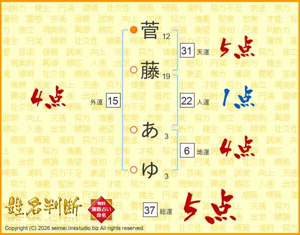 菅(12画)藤(19画) あ(3画)ゆ(3画)