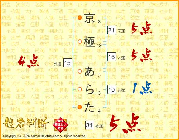 京極あらたさんの総運は31画の5点!