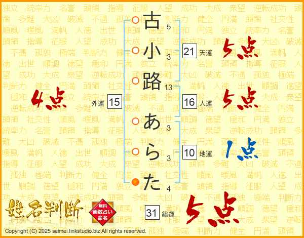 古小路あらたさんの総運は31画の5点!