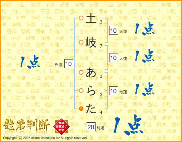 土岐あらたさんの総運は20画の1点!