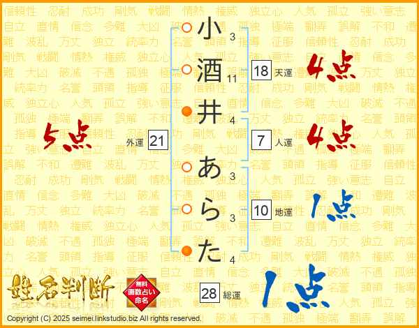 小酒井あらたさんの総運は28画の1点!