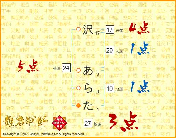 沢あらたさんの外運は24画の5点!