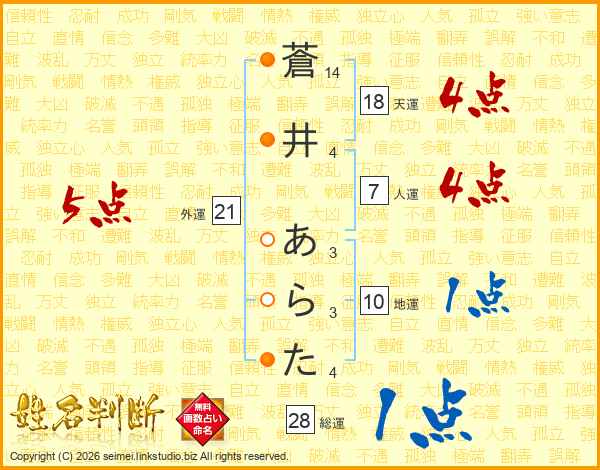 蒼井あらたさんの総運は28画の1点!