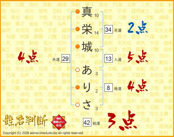 真(10画)栄(14画)城(10画) あ(3画)り(2画)さ(3画)
