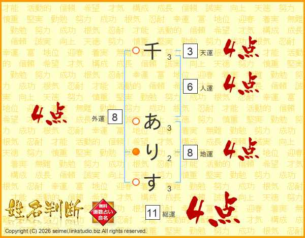 千ありすさんの総運は11画の4点!