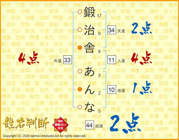 鍛治舎あんなさんの総運は44画の2点!