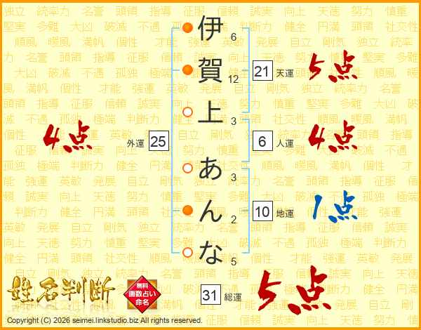 伊(6画)賀(12画)上(3画) あ(3画)ん(2画)な(5画)