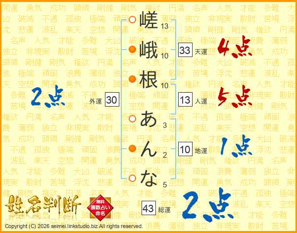 嵯峨根あんなさんの総運は43画の2点!