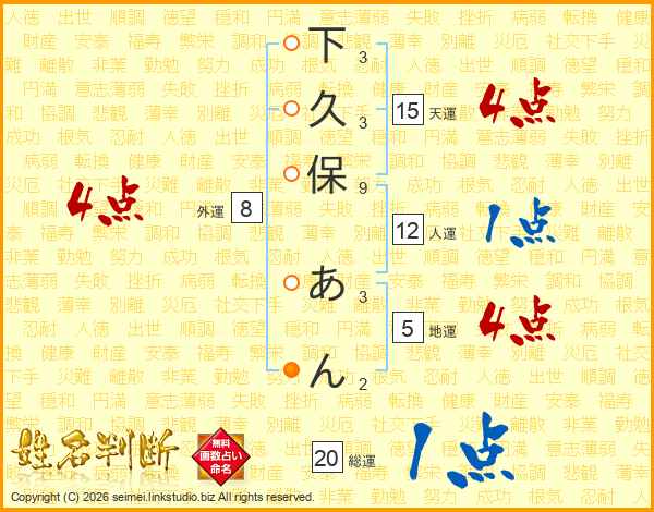 下(3画)久(3画)保(9画) あ(3画)ん(2画)