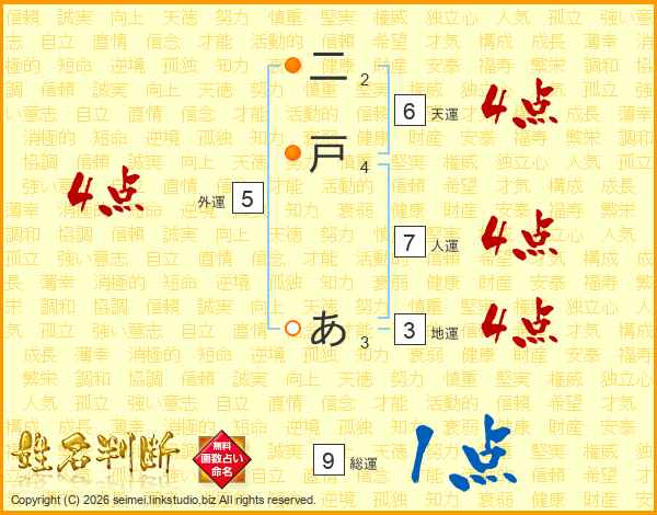 二戸あさんの人運は7画の4点!