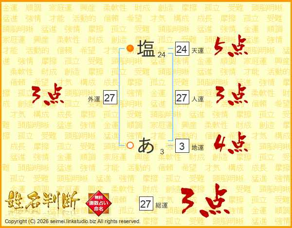 塩あさんの総運は27画の3点!