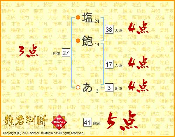塩飽あさんの総運は41画の5点!