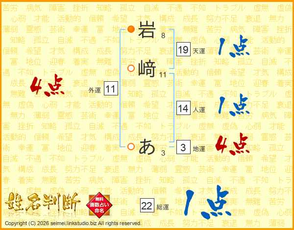 岩﨑あさんの人運は14画の1点!