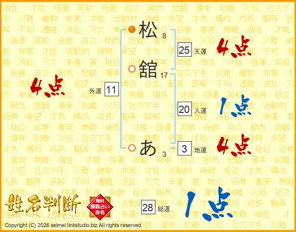 松舘あさんの総運は28画の1点!
