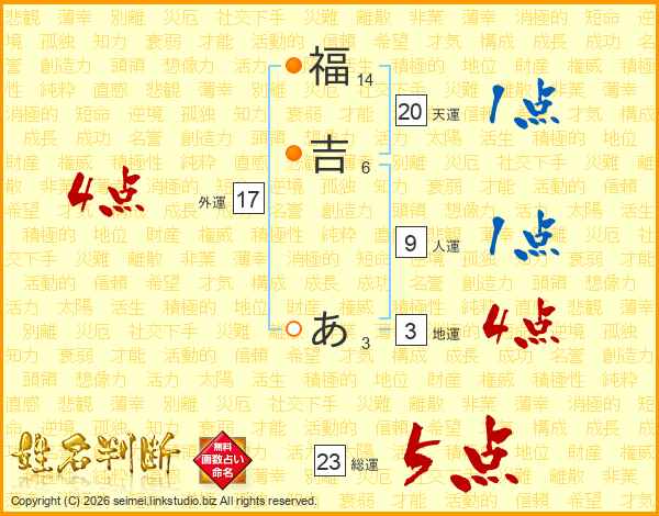 福吉あさんの総運は23画の5点!