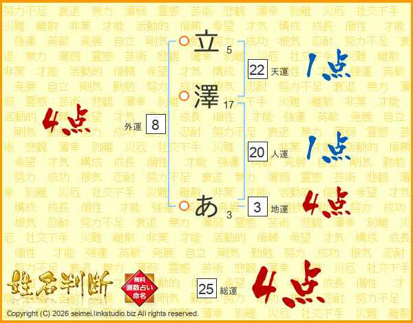立澤あさんの総運は25画の4点!