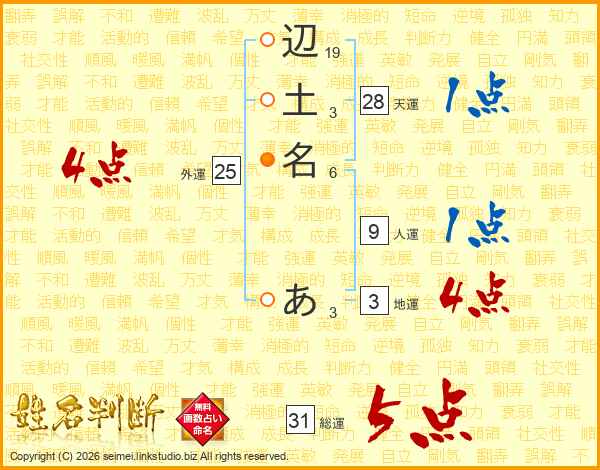 辺土名あさんの総運は31画の5点!