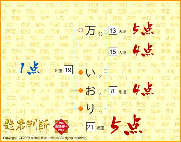 万いおりさんの総運は21画の5点!