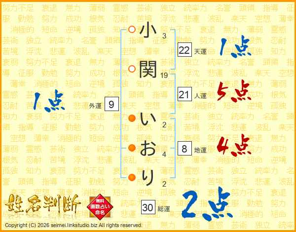 小関いおりさんの総運は30画の2点!