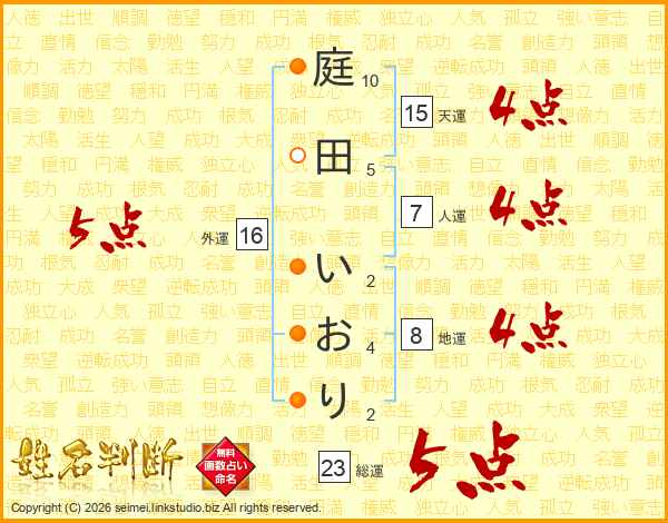 庭田いおりさんの外運は16画の5点!