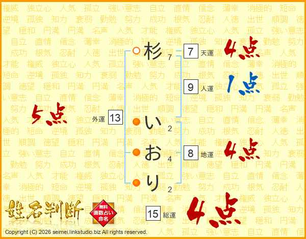 杉いおりさんの総運は15画の4点!